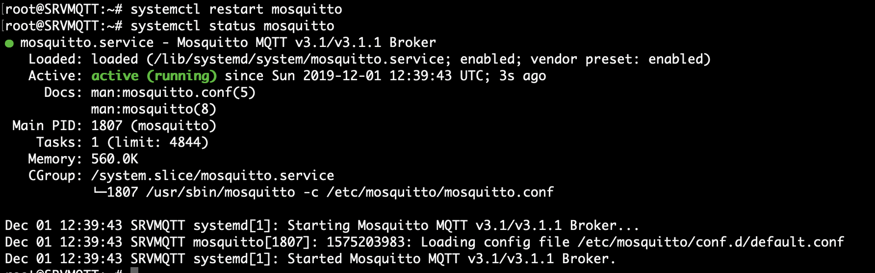 systemctl restart mosquitto
