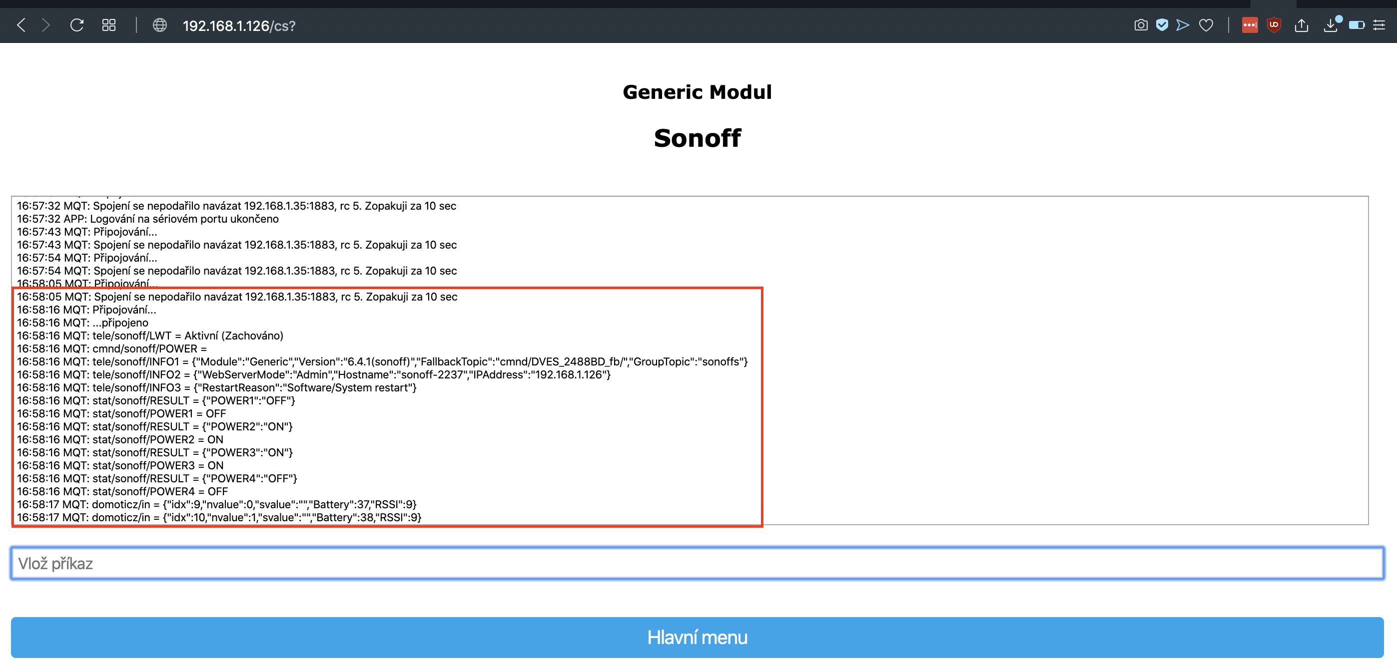 Klikneme na uložit, zařízení se resetuje, následně můžeme kouknout do logu zda se zařízení připojilo. Pokud ne máme někde chybu :)