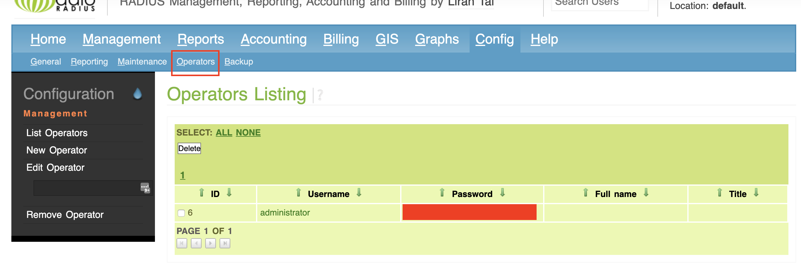 The default login credentials for daloRADIUS are, user: