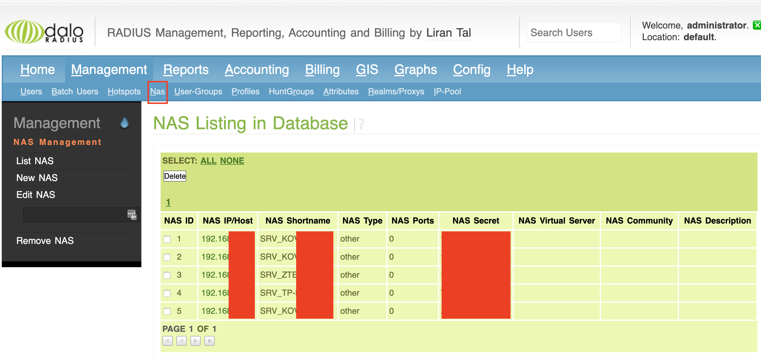 14) Konfigurace DALOradius z GUI