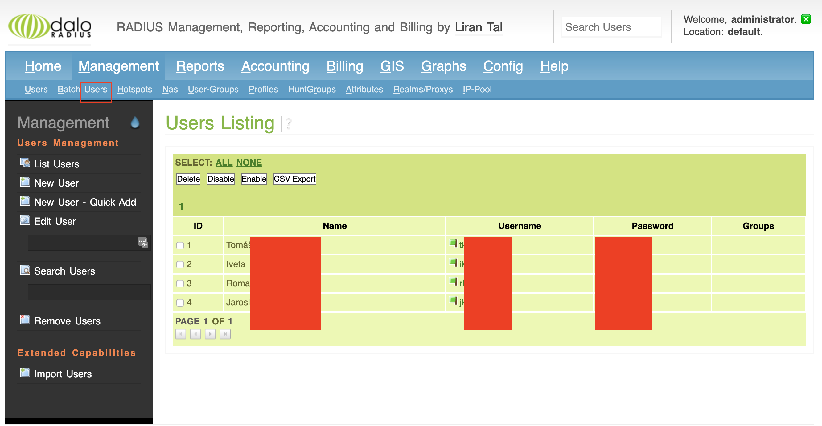 administratorand password:radius.14.1) Změníme si default credentials