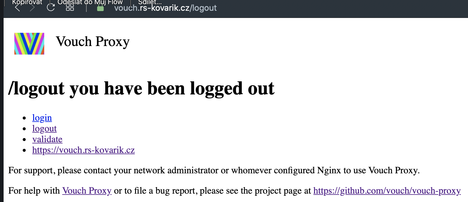Pokud je SRV_PROXY nastaven správně, tak po zadani vasi adresy např. https://vouch.rs-kovarik.cz/logout vidíme následující: